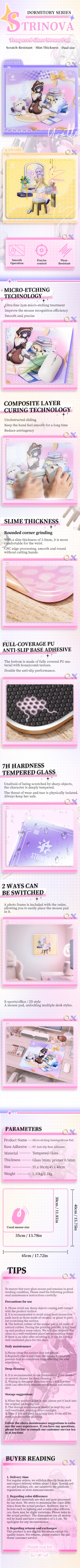 HARMOD&Strinova Glass Gaming Mouse Pad, Tempered Glass, Micro-etched Optimized Optical Sensor, Scratch-resistant, Quiet Design, Anti-slip PU Bottom, Durable, Mohs Hardness>7H, CNC Milled Rounded Edges (450*400*35mm), Multiple Size Options