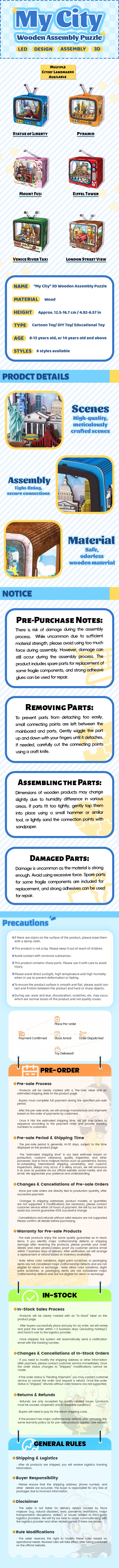 【Premium Craftsmanship & Quality】Made from high-quality natural wood with smooth edges and precise laser cutting. Vibrant prints highlight detailed city designs, ensuring a durable, safe, and visually striking display.